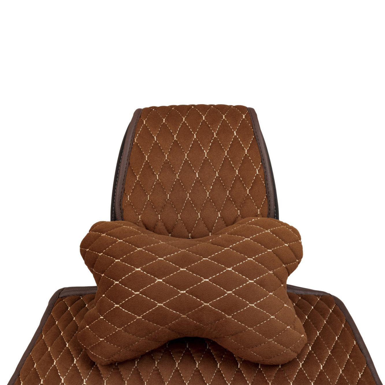 Cuscino poggiatesta per auto Alfa Cars in alcantara 27×16 cm, marrone, rombo piccolo