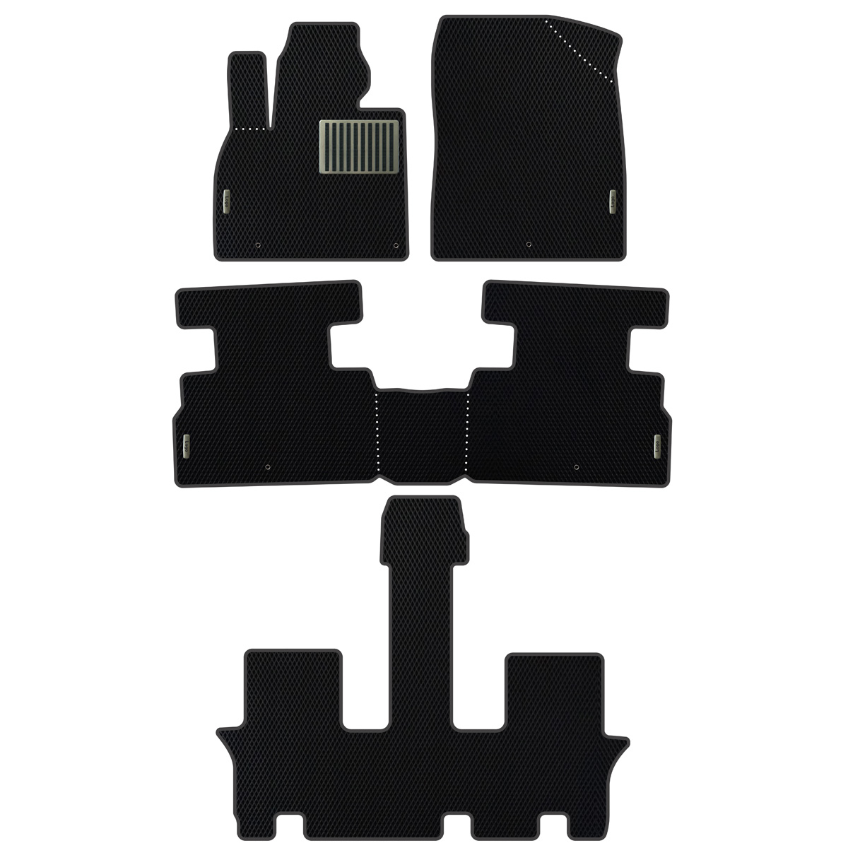 I tappetini EVA acquistabili da noi sono facilissimi da pulire – basta estrarli e scuoterli per eliminare lo sporco e l’acqua in eccesso. Così pantaloni, scarpe e interni della tua auto resteranno sempre puliti! Un altro motivo per acquistare EVA Tappetini Auto Kia Telluride (2019-…) è il loro perfetto adattamento ai punti di fissaggio originali del produttore. Inoltre, sono dotati di velcro speciale che li mantiene fermi durante la guida.